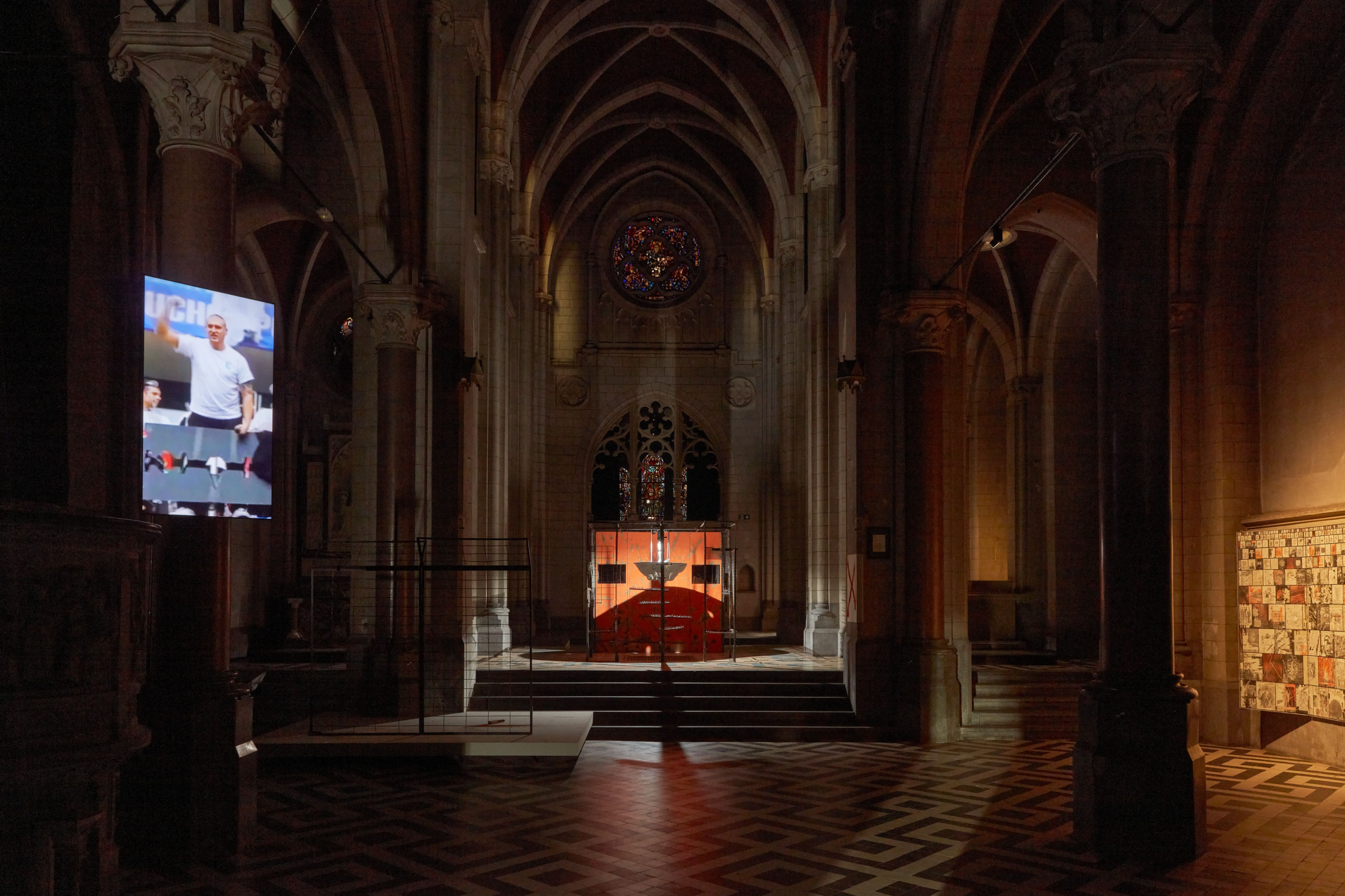 From an early age, Marcin Dudek was exposed to extreme forms of football violence. Together with his brother, he was part of the hooligan community around KS Cracovia that bogged down in criminal activities to survive the 1990s. For Dudek, membership of this violent fan club paradoxically also meant safety and security, a tension that is easily perceptible in his work and is well shown at the Kunsthal. Curator Joachim Naudts describes it as follows; "Marcin Dudek is a remarkable artist whose raw and uncanny oeuvre fits perfectly in the former Dominican church where Kunsthal Extra City has taken up residence since 2021. The specific architecture - with its exceptional height, special light and sacred atmosphere - provides the perfect setting for Dudek's haunting sculptures and menacing installations."