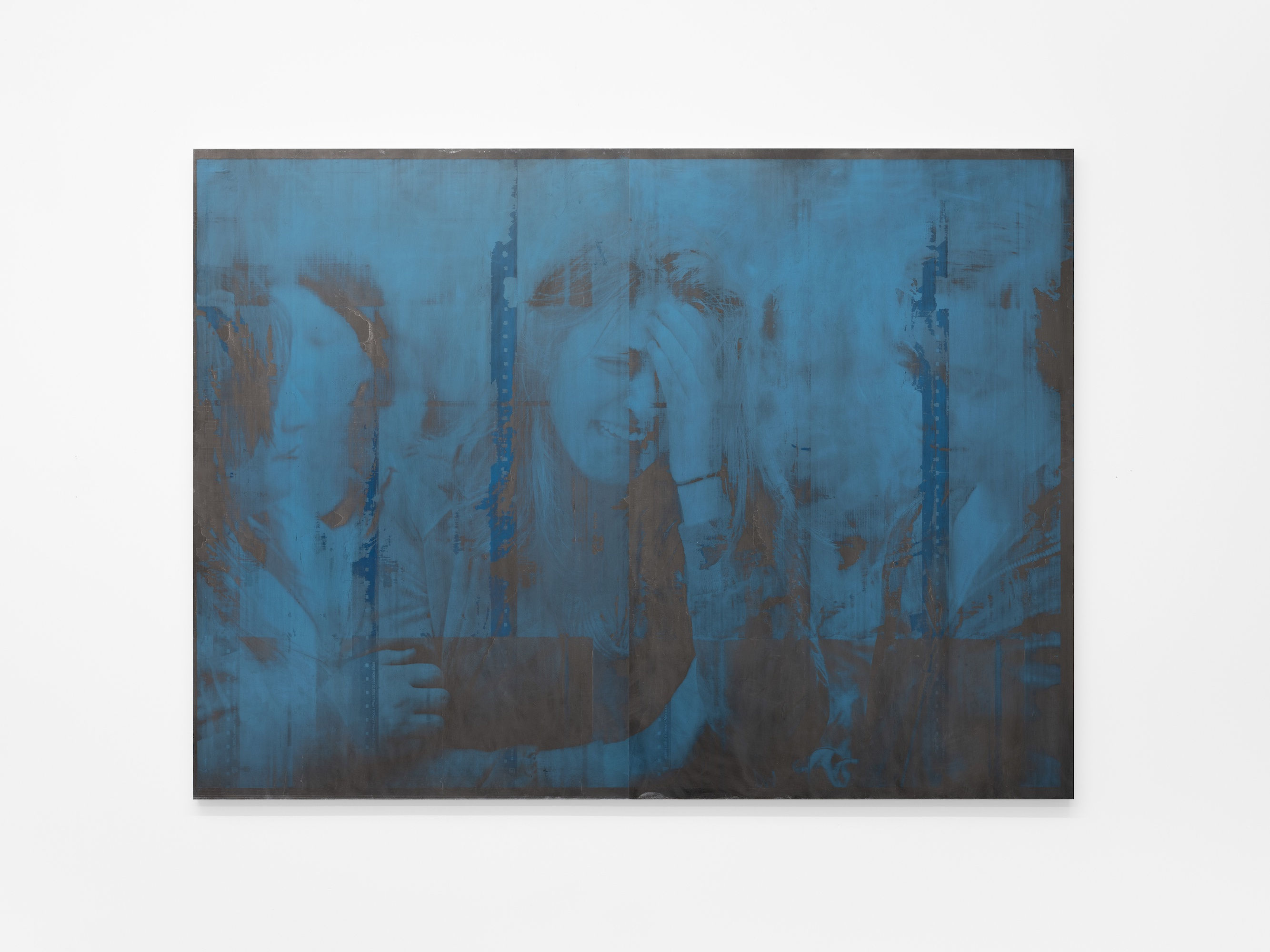 In the series 'Memento', on the other hand, his ongoing collaboration with the technicians of a newspaper production plant, has allowed him to create the works using paper’s offset plates and imaging equipment (here a short video of the process), which is almost an old fashion means for printing. He used the images that had appeared in the newspaper as a source and progressively the degree of experimentation has grown. Mounting plates together, enlarging the images, overexposing the plates, the rolling ink across the images with the paper’s rotary press etc. As a result, we have images that could exist in different states, like pure surface and in depth, the overexposure for instance makes the image exist on the edge of visibility. A blue canvas will suddenly start to be inhabited by a shred of image depending on how the light is hitting it, says the artist.